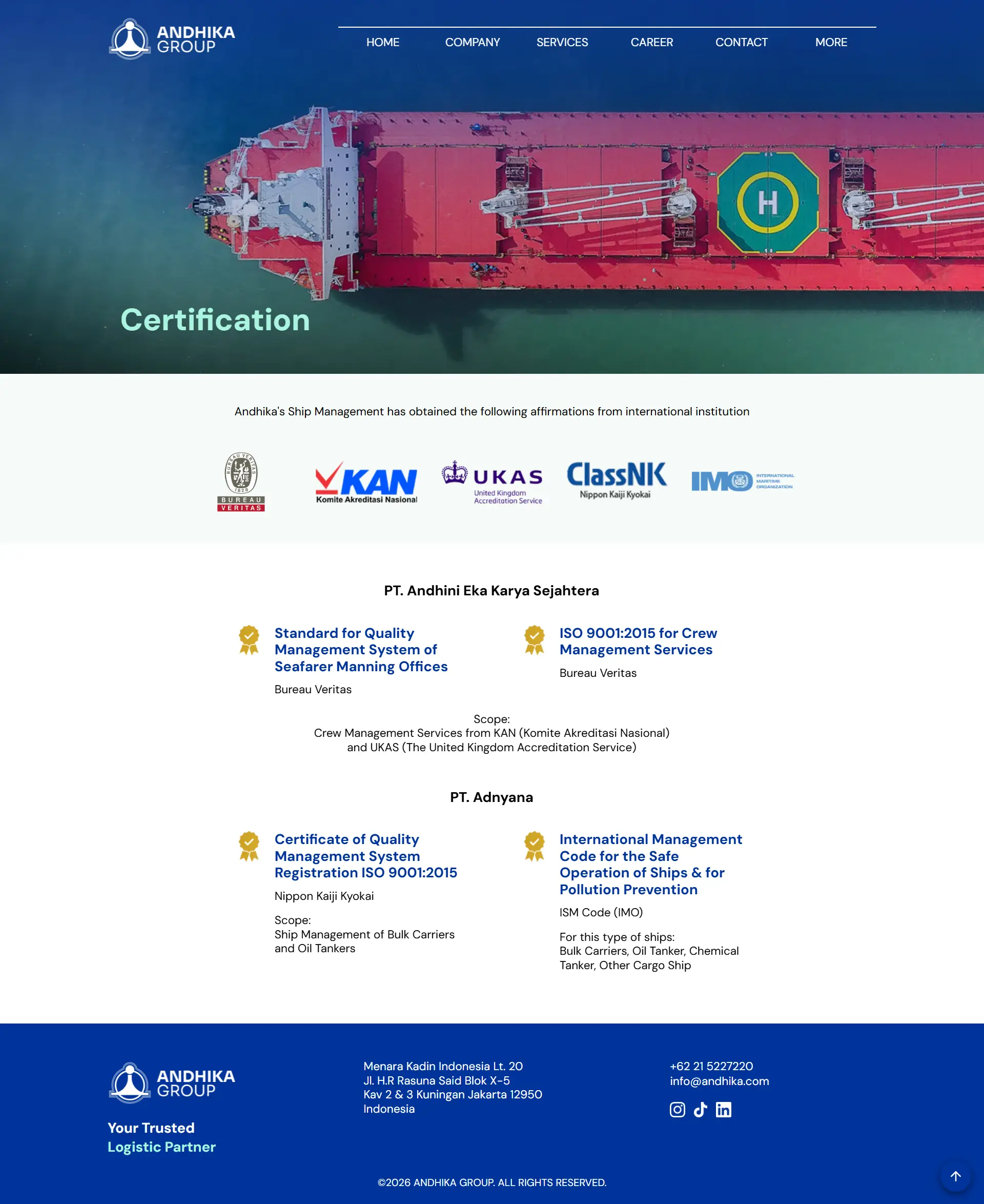 Revamped Andhika Group's official website, delivering a modern design and comprehensive company information.
